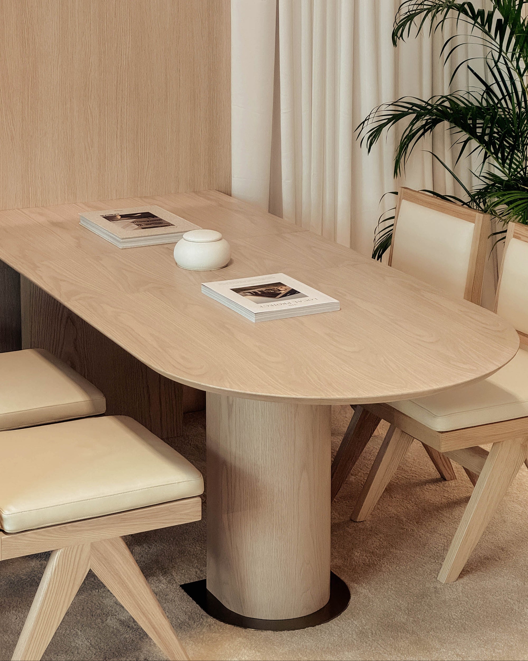The Lloyd Extendable Dining Table is a thoughtfully designed solution for compact living, effortlessly extending from 1.6m to 2.0m to accommodate up to eight diners. Its distinctive half-moon legs elegantly complement the curved tabletop, while a recessed box leg discreetly conceals power sockets for added functionality.